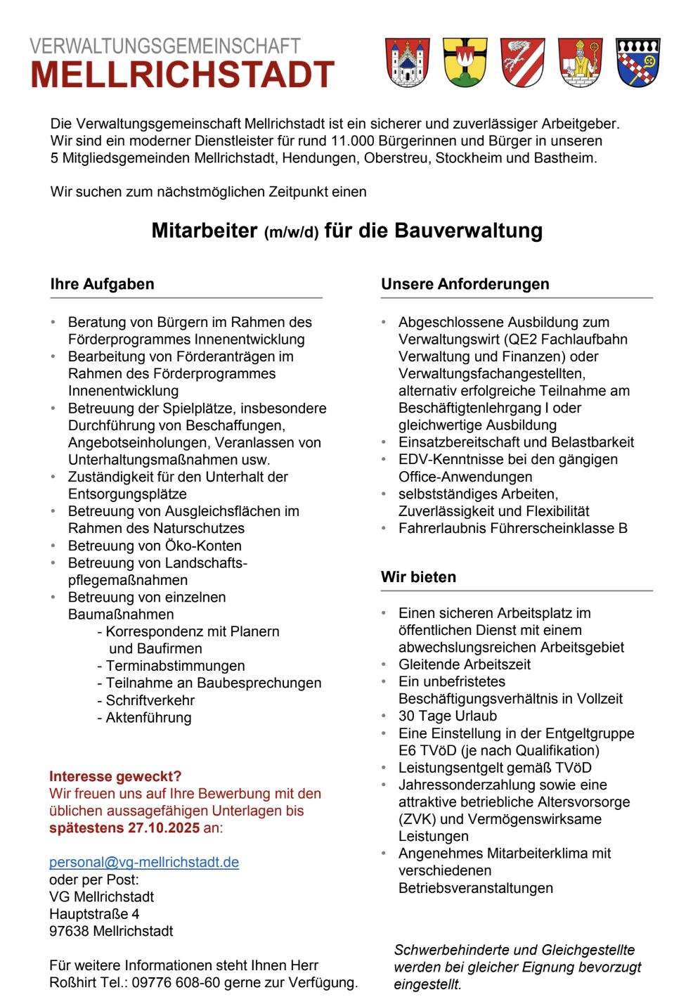Wir freuen uns auf Ihre Bewerbung mit den üblichen aussagefähigen Unterlagen bis spätestens 27.10.2025 an: