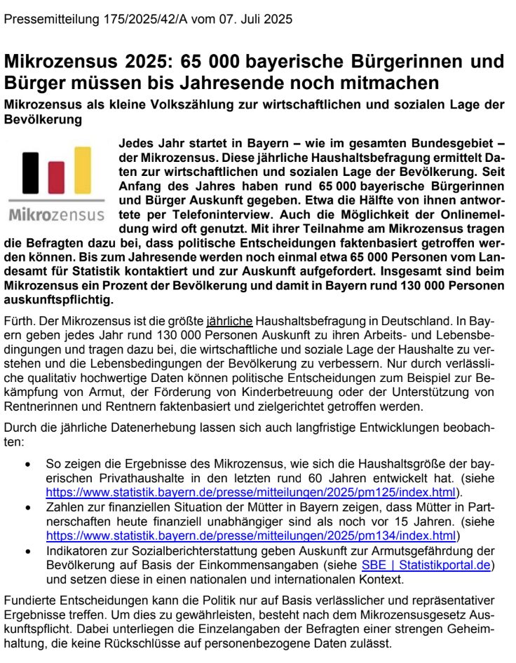 Mikrozensus 2025: 65 000 bayerische Bürgerinnen und Bürger müssen bis Jahresende noch mitmachen