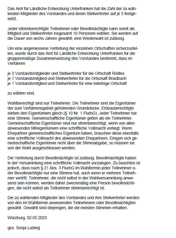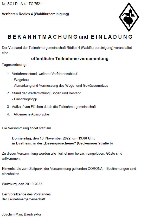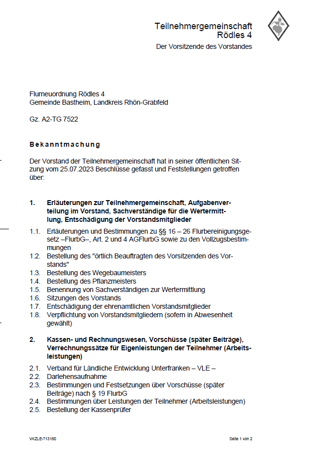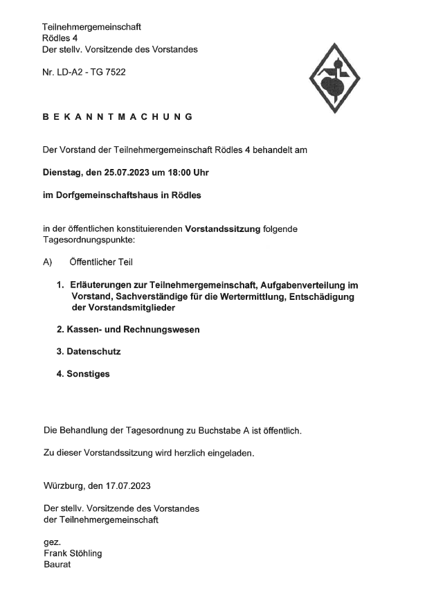 - Teilnehmergemeinschaft Rödles 4 – öffentliche Vorstandssitzung am 17. Juni
