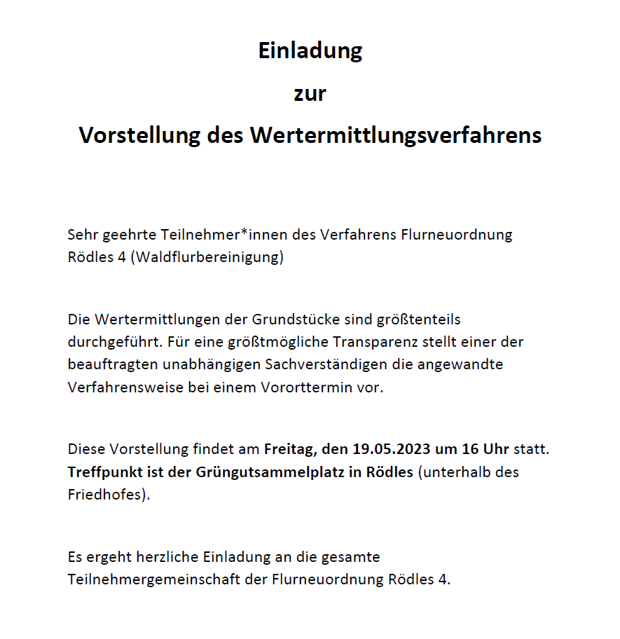 - Flurneuordnung Rödles 4 – öffentliche Teilnehmerversammlung am 17. September